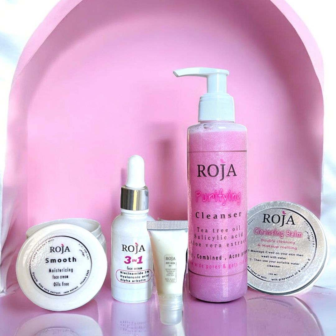 بالم الغسول الزيتي + غسول البشرة الدهنية + سيرم الوجه 3*1 + مرطب البشرة الدهنية + جل علاج الحبوب